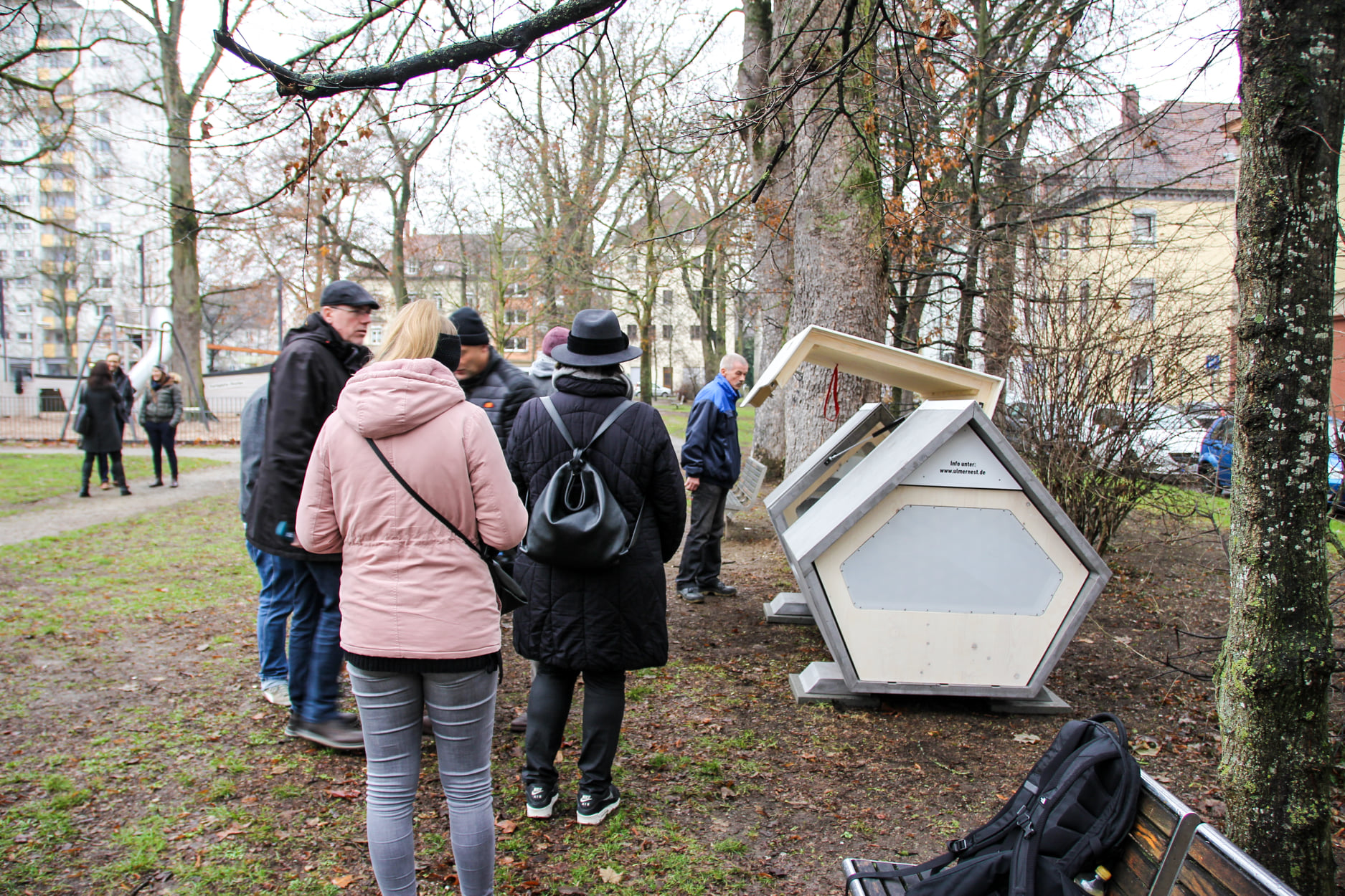 Feedback wurde eingeholt und ordnungsgemäß zur Kenntnis genommen. Der Prototyp wurde an zwei verschiedenen Orten präsentiert: Passanten, Betroffenen und Mitarbeitern der Wohnungslosenhilfe, deren erste Eindrücke und Meinungen berücksichtigt wurden Source: Facebook/UlmerNest